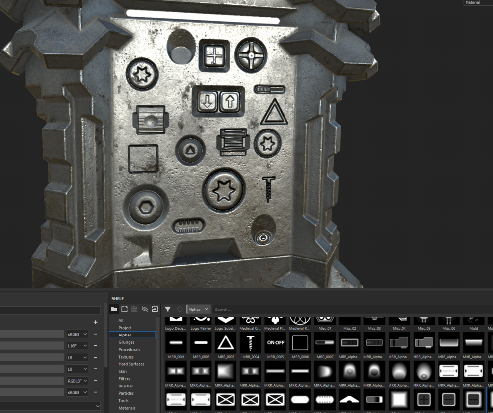 This Pack contains current 79 different Alphas. You can use it with Substance Painter, Zbrush, Blender and a lot more Programs.
